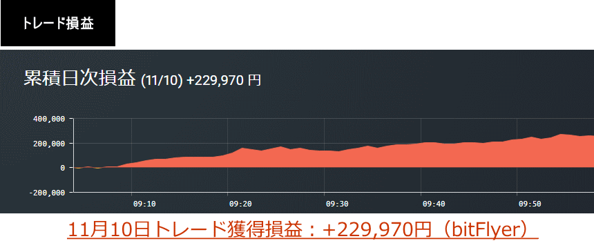 以下、この時に行ったトレードの収支結果です(以下の損益明細は11月10日の合計損益のため、ポスト投稿前後のトレード損益も含まれています。)