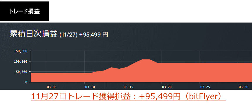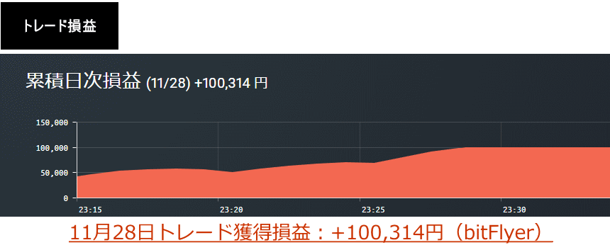 以下、この時に行ったトレードの収支結果です(以下の損益明細は11月28日の合計損益のため、ポスト投稿前のトレード損益も含まれています。)