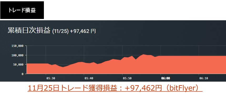 以下、この時に行ったトレードの収支結果です(以下の損益明細は11月25の合計損益のため、ポスト投稿前のトレード損益も含まれています。)