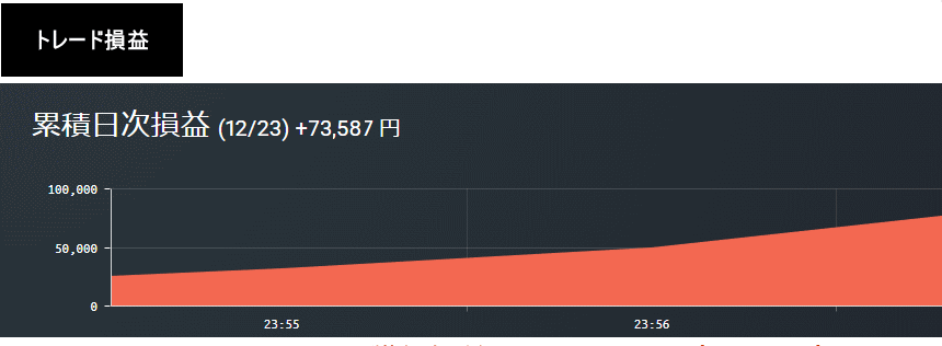 以下、この時に行ったトレードの収支結果です(以下の損益明細は12月23日の合計損益のため、ポスト投稿前のトレード損益も含まれています。)